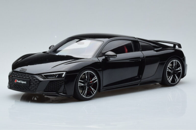 A 1:18 scale model measures approximately 25-28 cm (approximately 10-11 inches). The Audi R8 Performance Nero Kengfai 1:18 is perfect for display in a glass cabinet or on a shelf.