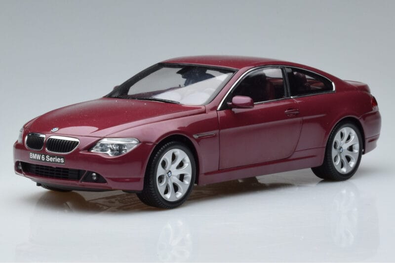 The BMW 645Ci E63 Rosso Scuro Kyosho 1:18 is crafted from Pressofusione. Die-cast zinc alloy body with detailed plastic parts, rubber tires, and high-quality paint finish. Die-cast models are known for their weight, durability, and realistic feel.