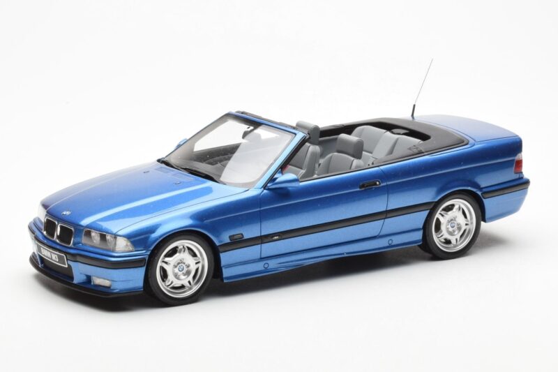 A 1:18 scale model measures approximately 25-28 cm (approximately 10-11 inches). The BMW M3 E36 Cabriolet Blu Otto 1:18 is perfect for display in a glass cabinet or on a shelf.
