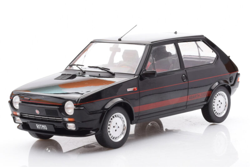 The Fiat Ritmo TC 125 Abarth Nero MCG 1:18 is crafted from Pressofusione. Die-cast zinc alloy body with detailed plastic parts, rubber tires, and high-quality paint finish. Die-cast models are known for their weight, durability, and realistic feel.