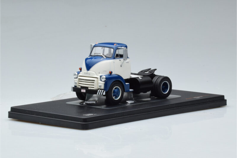 The GMC 950 COE Blu Bianco IXO 1:43 is crafted from Pressofusione. Die-cast zinc alloy body with detailed plastic parts, rubber tires, and high-quality paint finish. Die-cast models are known for their weight, durability, and realistic feel.