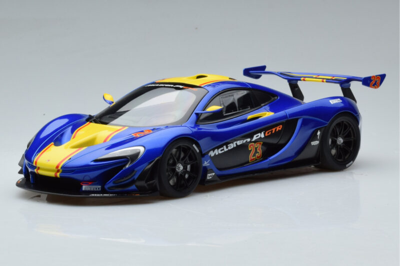 The McLaren P1 GTR Blu Con Strisce Gialle AUTOart 1:18 is crafted from Composito. High-quality Composito construction with detailed finishing.