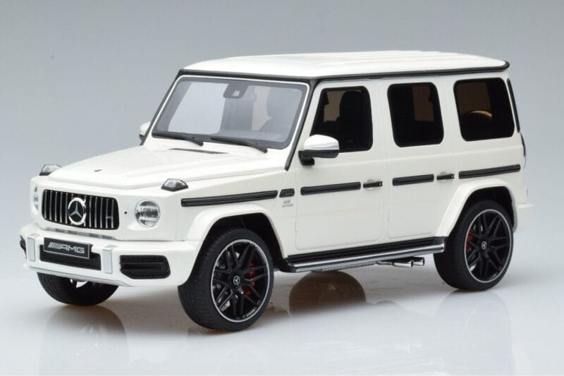 The Mercedes AMG G63 W463 Bianco GT Spirit 1:18 is crafted from Pressofusione. Die-cast zinc alloy body with detailed plastic parts, rubber tires, and high-quality paint finish. Die-cast models are known for their weight, durability, and realistic feel.